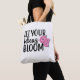 Esta bolsa de tote apresenta uma citação inspiradora "Let Your Ideas Bloom" e 3 flores cor-de-rosa.