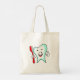 Um saco de tota de canvas com uma ilustração de um estilo de desenho animado, grande dente branco sorrindo alegremente segurando uma escova de dente vermelha e dando aos polegares uma placa para cima.