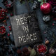 Descanse na Bolsa de Tote da Paz. © Desejos do Coração Escuro. Esta bolsa de tote gótica tem um design de rosa preto com as palavras Descanso em Paz em seus ossos.