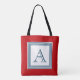 Design de monograma de estilo náutico com decoração de quadrados com quadrados com quadrados com risca em fundo vermelho