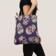 Esta bolsa de tote de compro verdadeiramente única apresenta uma colagem de crânios de açúcar muito artísticos e coloridos. Este item faria uma ideia maravilhosa de presente para amigos e familiares.