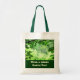 Esta bolsa de tote convida-vos a entrar num mundo verde de paz e serenidade. As folhas escuras enquadram a imagem, levando a uma cena ensolarada de floresta com tons de amarelo, branco e verde florestal. A mensagem diz: "Tenha um Dia da Terra Verde!" Personalize o texto de acordo com as suas necessidades.