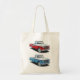 Um casal de caminhões juntos. Um vermelho e um azul. Este design parece realmente eficaz nesta Tote Bag
