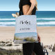 Um saco de designer moderno com uma cena costeira com dunas de areia sobre uma praia e um oceano. Bonita para um casamento na praia ou para quem ama a praia! Recomendado em tamanho médio.