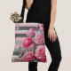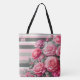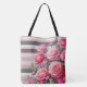 Bolsa Tote Elegant Striped Pink and Grey with Roses