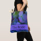 Bolsa Tote Elegante azul poeirento floral roxo