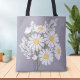 Bolsa Tote Elegante Floral White Daisies na Lavanda