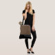 Esta encantadora bolsa tote com estilo mostra a palavra "Damas de Honra" em texto branco sobre preto com a parte superior da bolsa em marrom latte personalizado. Tem espaço de sobra para texto personalizado. Gráficos e texto estão em ambos os lados desta bolsa tote. Alça preta. Personalize ainda mais ou compre como mostrado.