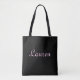Esta bolsa tote, com sua letra sofisticada, vai adicionar um toque de especial quando você fizer suas tarefas do dia. Personalizável. Por Sharon Lee Hudson.