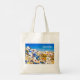 Traga a beleza do Egeu onde quer que você vá com esta estonteante bolsa de tote do tema Santorini. Apresentando icônicos prédios lavados em branco, cúpulas azuis e uma vista à beira-mar, é perfeito para comprar, viagem ou dar a alguém uma Grécia.
