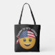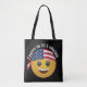 Carregar seu essencial com um sorriso. Nossa bolsa de tote "Happy to Bolsa Around" apresenta um emoji sorridente balançando uma bandana na moda americana. Perfeito para excursões ocasionais, viagens ao mercado, ou eventos patrióticos, esta bolsa não só é divertida como também prática. Prepare-se para bolsa em estilo.