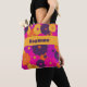 Essa bolsa personalizada apresenta um padrão inédito inspirado pela era hippie com flores no estilo margarida em tons de roxo, laranja, amarelo e rosa claro. Adicione um nome ou outro texto personalizado para criar um presente de um tipo.