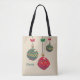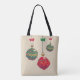 Fácil de personalizar a bolsa de tote, apenas adicione seu nome! Bonitas malas de impressão! Disponível em dois estilos e dois tamanhos! Ilustração Vintage design da festa de Natal Feliz com ornamentos de vidro redondos vermelhos e verdes. São decorados com espirais decorativas amarelas, listras e formas de diamante. Retro 50 clássico kitsch.