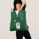 Saco único de enfermeira com esfregões de hospital verde criativo. Para personalizar, edite texto para adicionar nome.