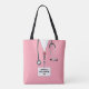 Saco de designer com tema médico único com escovas de hospital rosa. Para personalizar editar texto para adicionar nome.