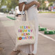 Saco de tote de veganismo engraçado com um ditado colorido que diz "vegan from my head Tomates".