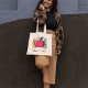 Celebre professores, estudantes e o espírito escolar com esta adorável bolsa de tote de canvas com uma maçã rosa brilhante cercada por lápis, livros, tesouras e réguas coloridas. Perfeito para livros de carregando, planos de lição, mercearias ou essenciais do dia a dia. Feito de algodão durável e ecológico, este saco reutilizável faz um presente pensativo de volta à escola, apreciação de professores presente ou acessório de na moda para qualquer educador. Adicione seu próprio texto ou nome à faixa para um toque personalizado!
