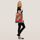 Esta imagem é um desenho abstrato geométrico com camadas quadradas concêntricas que espiralam para dentro. Os quadrados são feitos de cores ousadas e contrastantes: amarelo, laranja, vermelho, verde-oliva e roxo profundo. Cada quadrante alterna de cor, dando ao design um efeito dinâmico e quase óptico semelhante a ilusão. A combinação de tons quentes e legal cria um sentido de profundidade e equilíbrio.