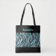Bolsa tote preta e turquesa com estampa de zebra e monograma personalizado. Personalize com seu nome ou iniciais. Ótimo presente para damas de honra ou presentes para ela.