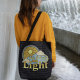 Esta é uma design divertida numa bolsa de ombro de qualidade, perfeita para um cristão com um estilo único. Em uma estética inspirada no Retro, há uma cena de nuvens e sol em branco, azul e amarelo, e as palavras 'Caminhando na Luz'. A design é única e moderna, mas ousada e cheio de alegria - a pessoa que usa esta bolsa orgulha-se da sua fé!
