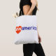 Para um patriota americano. A mensagem está em vermelho, branco e azul. Eu adoro os EUA. Mostre seu amor pela América com este saco ousado.