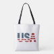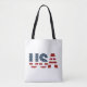 A pintura apresenta uma inscrição estilizada "EUA", inspirada na bandeira nacional dos Estados Unidos. Essa obra combina símbolos nacionais com tipografia artística, celebrando a ideia de liberdade e orgulho nacional.