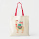 Fa La Llama Festivo Tote Bags Festivas Festivas de Natal apresenta um Llama em espírito de feriado vestido com o chapéu Santa e o cachecol vermelho com um presente nas costas. as palavras "Fa La Llama" são escritas na tipografia popular moderna. Perfeito como presentes no Natal e nos feriados. Projetado por feriados do Evco www.zazzle.com/store/evcoholidays
