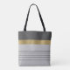 Um belo toque de cinza e ouro adiciona uma vibração clássica a esta bolsa de tote. Personalize esta bolsa para você ou para um amigo.