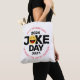 O riso é o melhor remédio, e que maneira de fazer cócegas no seu osso engraçado e celebrar o humor do que no dia 1rua de julho (Dia Internacional da Piada) com esta bolsa comemorativa de todos os impressões, que apresenta as saudações "Feliz Internacional" e "Celebrar a Alegria do Riso" cercando as palavras Dia da Piada, com um rosto risonho em pé para a letra O. O mostra design idêntico . Copiar e Layout © W.H. Sim. Todos os Direitos Reservados. Mais informações em zazzle.com/expressionsoccasions