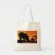 Uma silhueta de uma mãe de rinoceronte e seu bezerro bebem do buraco de água local enquanto o sol se põe atrás deles. Computação de Kathie Miller