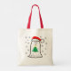 Fantasma bonito segurando uma árvore de Natal e vestindo um chapéu de Papai Noel com flocos de neve no fundo