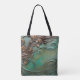 Bolsa Tote Faux 3D design teal e ferrugem floresce