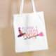 Bonita e Divertida Bruxa Rosa Hocus Pocus Halloween Hat Broomstick Tote Bag, Bem-vindos aos seus convidados com esta fofa engraçada e engraçada bolsa de tote de Halloween. A design de tipografia na moda apresenta "É só um monte de Hocus Pocus" com palavras amarelas, roxas e pastéis cor-de-rosa, laranja, vassoura-de-bruxa, chapéu de bruxa, em fundo rosa.
