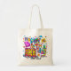 Feliz Aniversário, Sacos de tote, por ArtMuvz Illustration. Correspondência com presentes de aniversário personalizáveis e roupa. Festa de aniversário para aniversariante e aniversariante. Roupa de aniversário e presentes de festa de aniversário surpresa. Celebre seu aniversário em estilo! O design de aniversário colorido certamente vira cabeças e te coloca no espírito de aniversário! Para personalizar, adicione seu nome ou adicione texto. Personalize esta bolsa de tote de aniversário para torná-la exclusivamente sua ou para dar como presente personalizado.
