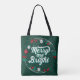 Os Natais vintages elegantes e modernos Tote Bag apresentam um fundo de neve polkadot, flocos de neve, ramos de abeto, poinsettias florais, letras florais floridas e tema de glândula botânica unida para representar o melhor dos feriados. É inspirado pelas canções de Natal do Natal e uma forma excelente de expressar Holiday Cheer por aqueles que você se importa. Criado com uma única letra e ilustração para aqueles que adoram Estilos Exclusivos e Novidade! Desenhado por Katrina Sutton.
