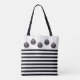 Padrão listrado preto e branco com texto de natal alegre de rosa claro. Design personalizado com decoração de bola de natal preto.