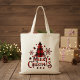 Esta sacola festiva de tote de uma fazenda moderna apresenta uma xadrez de búfalo vermelha e preta, cada árvore verde, flocos de neve e saudação de "Feliz Natal".