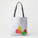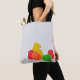 Feliz Natal com a Saco de Tote Candy Drops - Um bolsa com dois lados robusto com uma mensagem de Feliz Natal de um lado e gotas coloridas de doces que parecem ter caído no fundo do saco do outro lado. O guião Feliz de Natal tem um chapéu de Papai Noel no topo e uma bengala doce de menta no fundo. É uma excelente de dois lados adorável para doação de presente e também pode ser usada como saco-presente reutilizável para dar alguns presentes aos seus amigos.