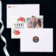 O tema do Natal russo é o design de uma bolsa com aquarela ilustrando poinsettia e verde com um texto que diz "Feliz Natal".