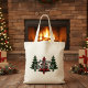 Este saco de tote festivo apresenta pinheiros de xadrez de búfalo vermelhos e verdes com "Feliz Natal" em modernos escritos decorativos.