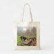 Esta bolsa de tote apresenta duas cabras adoráveis comendo seu janto enquanto o sol se põe em uma Fazenda de Connecticut.