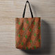 Descubra o único Tote Bag "Orange Floral Rainy Scatter Fibres Texturizadas" com arte floral cor de laranja neto em padrões diagonais com textura de abertura de chuva criada com fibras aleatórias. Esta bolsa de tote de tamanho médio e impressão combina o encanto da vintagem com designs têxteis padronizados elegantes, perfeito para as suas viagens de na moda e compro ecologicamente amigáveis.