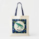 O Dinossauro Personalizado Kids T-Rex Tote Bag. Padrão de dinossauros em aquarela sobre fundo azul. Design de ambos os lados. Personalizar com nome.www.SamAnnDesigns.com