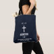 O azul escuro e o preto pisca o padrão de dispersão aleatória do saco de tota cristão, com uma cruz. Você pode personalizar o texto, incluindo suas próprias iniciais (ou nome se preferir), seu livro favorito da Bíblia, o capítulo e o verso, e pode incluir uma pequena citação do verso - ou simplesmente apagar a citação se quiser manter o design como um simples estilo de verso do capítulo do livro.