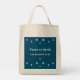 Saco de tote de texto azul e leve com design de floco de neve. Paz na Terra e boa vontade para todos. Penso que é a mensagem perfeita para o ambiente de hoje. Lembre-se de todos. Aspecto profissional, adequado para ofertas de negócios ou uso pessoal.