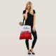 Esta bolsa tote espaçosa é o acessório perfeito para compras de Natal, um casamento de inverno ou qualquer momento em que você queira mostrar seu estilo. O design apresenta vermelho de Natal com flocos de neve brancos e é personalizado com um nome, iniciais ou o que você preferir.
