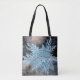 Uma foto de uma planta de cor branca, de cor azul claro, que parece um floco de neve, sentada sobre algumas rochas.