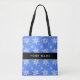 Bolsa Tote Flocos de neve brancos, azuis, seu nome, personali