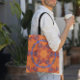 Bolsa Tote Flor de Mandala Retroativa Laranja e Azul