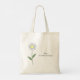 Saco de tota com ilustração botânica da flor da margarida em cores pastéis (Leucanthemum vulgare) e texto personalizável: perfeito para presente de aniversário, para comprar ou estudar. Daisy é a flor da natalidade de abril e é um significado simbólico de bondade, pureza, inocência, alegria e alegria.